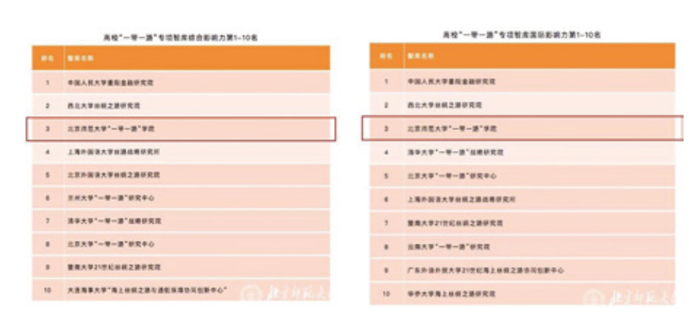 The other day, the Report on the Influence of The Belt and Road Special Think Tank of Chinese Colleges and Universities was released. The Belt and Road School of Beijing Normal University ranks among the top three in terms of comprehensive and international influence.