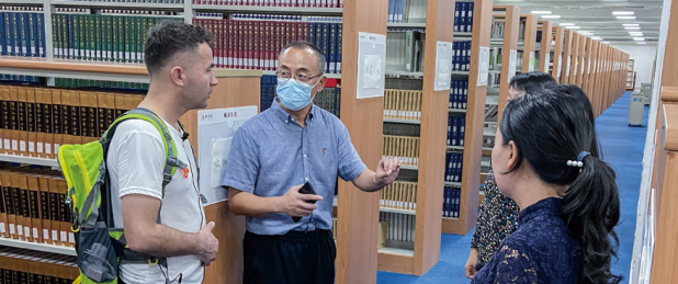 Imran joined a campus tour with three BRS staff and Flora Wu from the International Office. He was guided around the major facilities of the university, including teaching buildings, the library, student cafeterias, and the Sport Stadium. Imran said that he loved basketball and was impressed by the wellequipped facilities of the stadium. When he visited the library, he was introduced to the facilities and rules by the library staff.