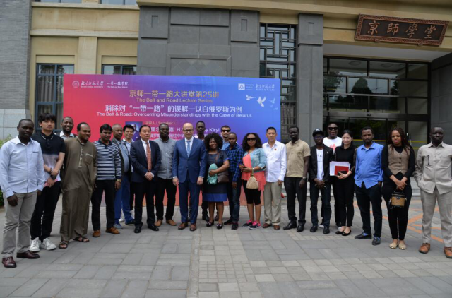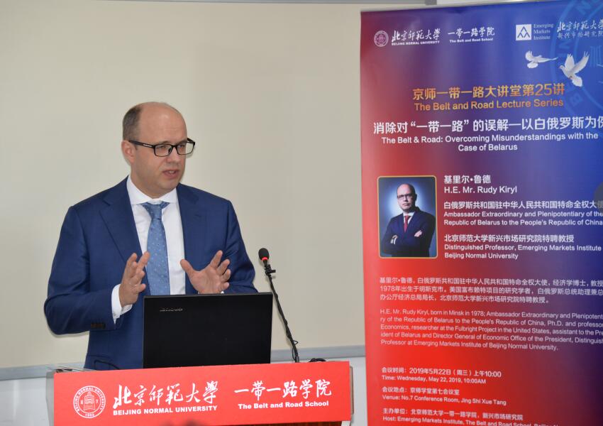 2019年是“中白教育年”,为了推进与白俄罗斯在“一带一路”相关研究和教育交流上的合作,我院于5月22日邀请了白俄罗斯共和国驻中华人民共和国特命全权大使、北师大新兴市场研究院特聘教授基里尔·鲁德做客京师“一带一路”大讲堂,围绕“消除对“一带一路”的误解——以白俄罗斯为例”进行了主旨演讲,白俄罗斯驻华大使政务参赞罗曼同行。包括20多位来自“一带一路”沿线国家的“发展中国家硕士项目”学员在内的70多名北师大部分师生参加了本次讲座。