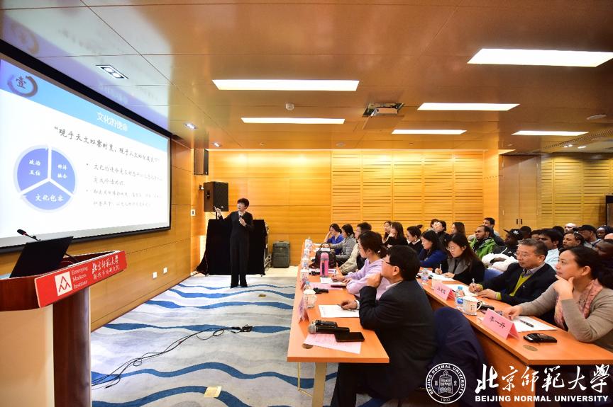1月11日,北京师范大学一带一路学院、新兴市场研究院举办“一带一路”大讲堂系列讲座第24讲《中国传统文化的当代价值与应用》,著名文化学者、首都文化创新与文化传播工程研究院院长、北京师范大学教授于丹发表主旨演讲,来自31个国家的“发展中国家硕士项目”学员以及北师大部分师生参加了讲座。