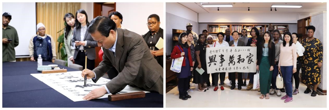 会后,徐建平与参会师生进行书法交流,并为即将毕业的2025届发展中国家硕士项目留学生送上“家和万事兴”墨宝,寓意“小家和睦、国家兴旺”,传递了中国智慧与美好祝愿。