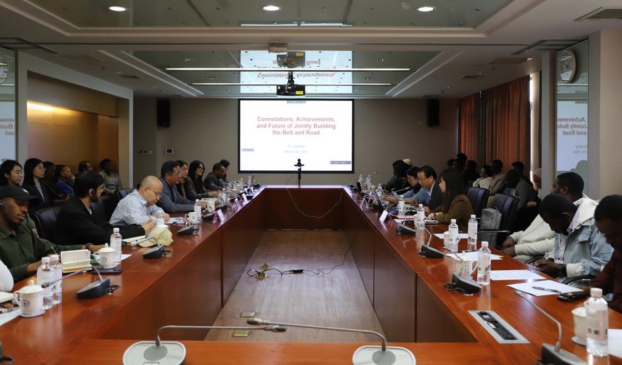 在交流探讨环节,徐建平就留学生关心的可持续发展、教育、就业等问题进行了讨论。他认为,留学生是所在国与中国互联互通的重要纽带,并鼓励他们通过田野调查和学习,深入了解中国在各领域的成就和经验,进而成长为对共建“一带一路”国家有用的人才。