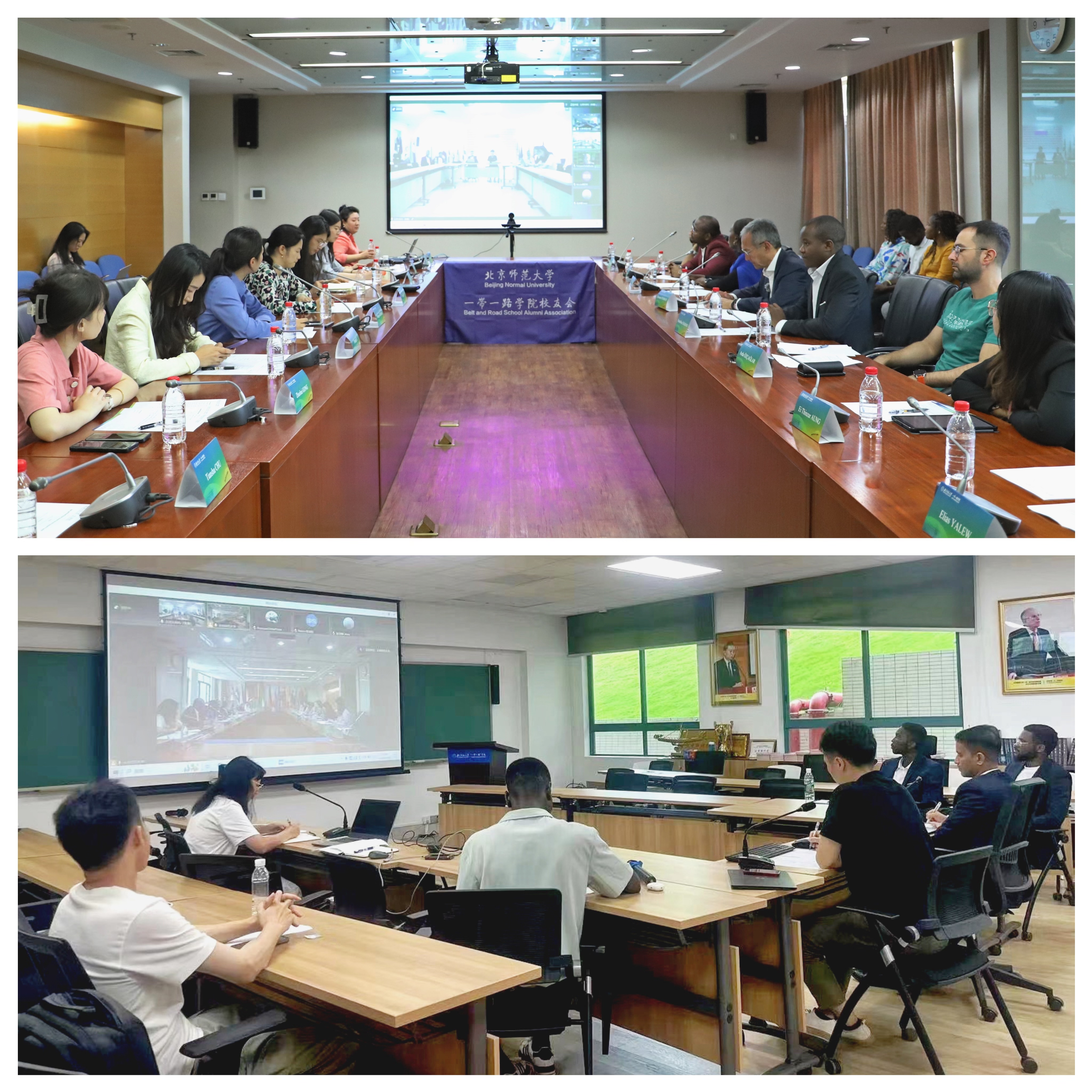 来自北京和珠海校区的19名留学生代表66名毕业生从学习感受、就业规划等方面与学院教师进行了充分交流,同时也结合本国情况和自身工作经验,为一带一路学院校友如何发挥校友网络优势,促进资源共享,服务两国发展提出了具体建议。会议由一带一路学院外事主任张梦雨主持。