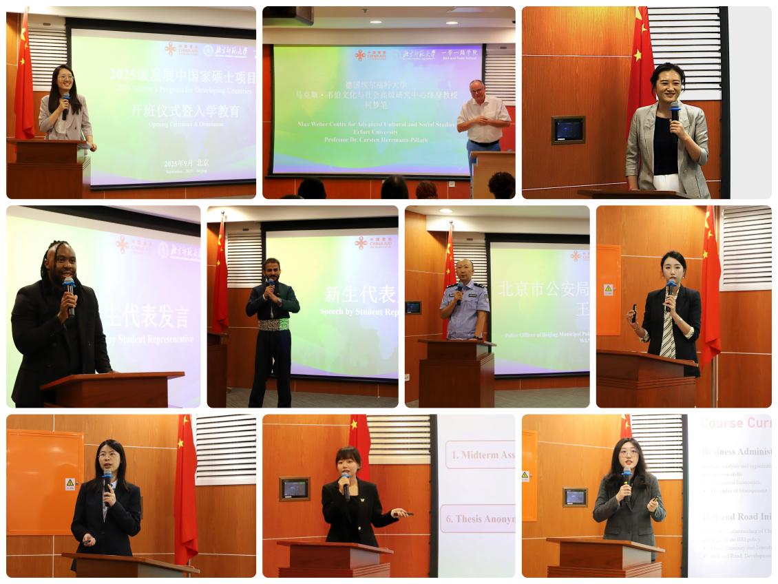 9月17日,一带一路学院2025级发展中国家硕士项目开班仪式暨入学教育于北京师范大学昌平校园举办。学院教师代表、相关职能部门负责人、北京市公安局昌平分局民警及以及来自22个国家的43名项目新生共同参与。